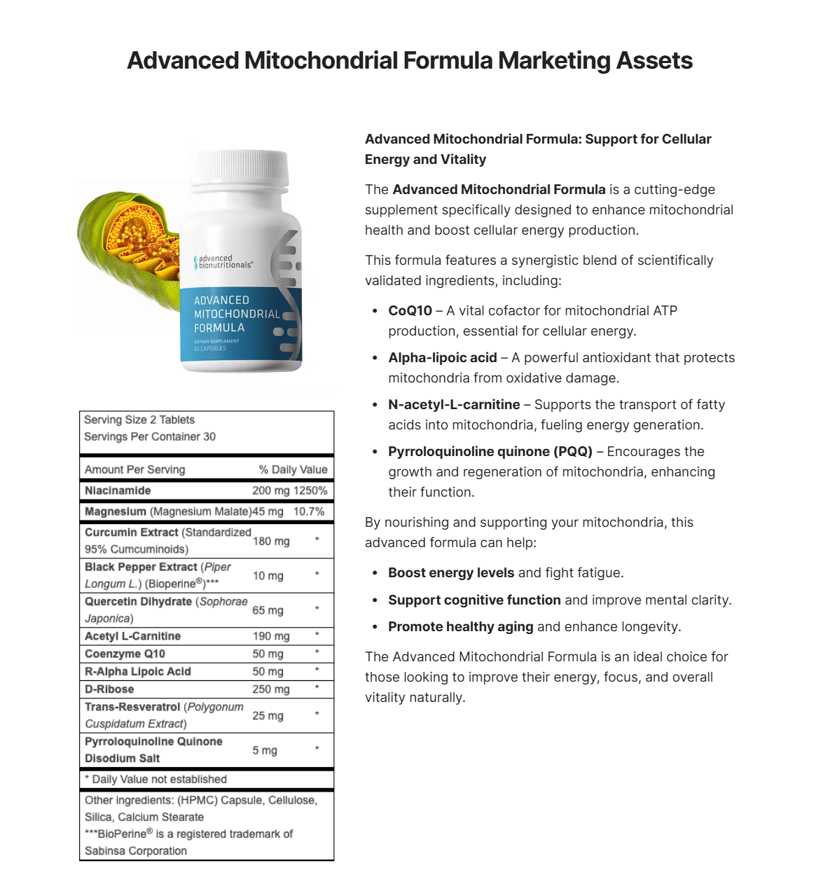 Advanced Mitochondrial Formula - Cellular Energy & Vitality Support