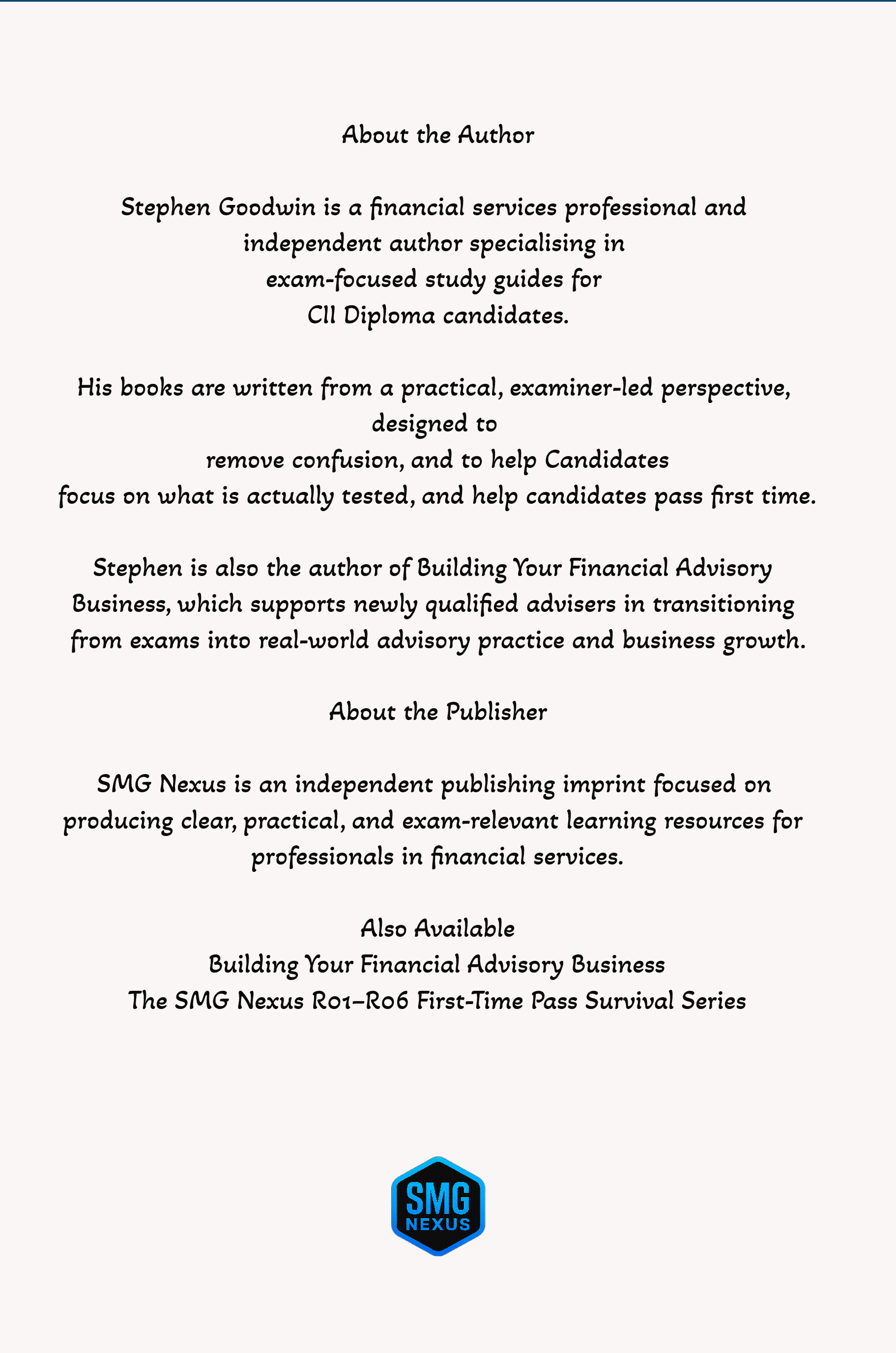 Complete your study pathway with the SMG Nexus R01–R06 First-Time Pass Survival Guides.